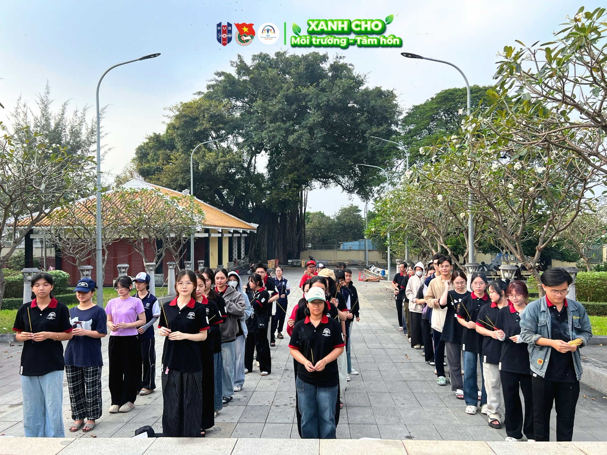 Chuỗi chương trình gồm 03 hoạt động nhỏ được tổ chức đan xen, bổ trợ và làm nổi bật ý nghĩa của nhau. Trong đó, hoạt động “Hành động xanh” với nội dung quét dọn khuôn viên và dâng hương tưởng niệm tại Nghĩa trang liệt sĩ Thủ Đức vào ngày 17/12/2025 là một trong những hoạt động trọng tâm, thể hiện rõ nét sự kết hợp hài hòa giữa bảo vệ môi trường, giáo dục truyền thống và nuôi dưỡng tâm hồn.